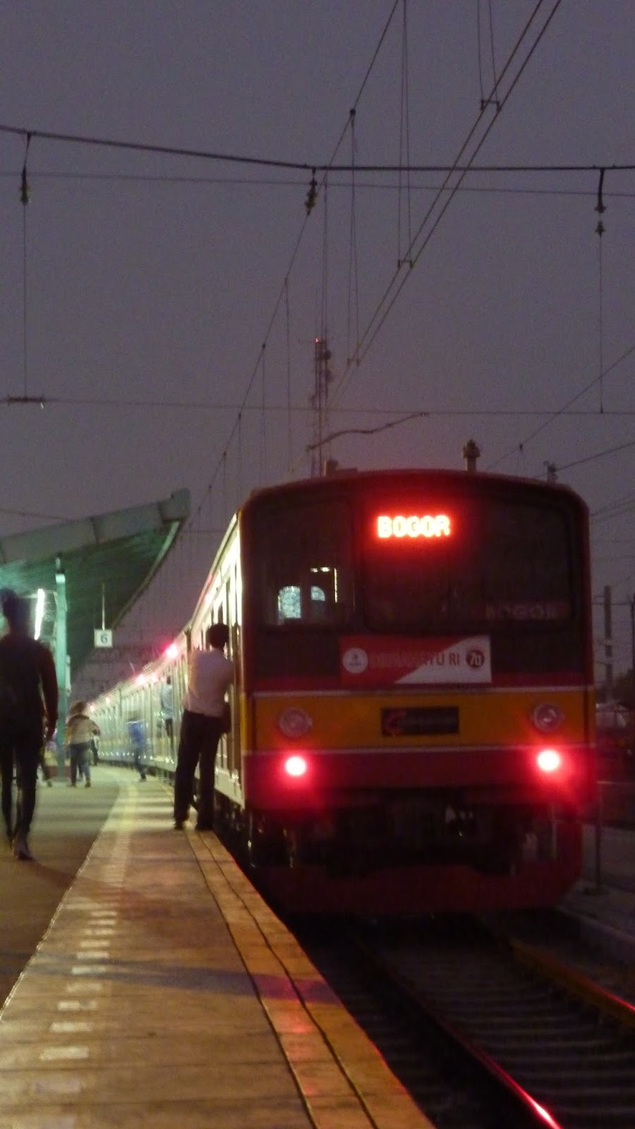 Penulis naik KA 1184 dari Stasiun Jakarta Kota ke Stasiun Depok setelah seharian berada di kampus dengan segudang tugas aneh dan menyedihkan yang menyita waktu penulis untuk beraktifitas. Karena hujan deras yang melanda Jabodetabek dan sekenanya, beberapa kursi di interior kereta basah sehingga tidak bisa diduduki. Namun KRL ini masih tetap terasa nyaman dan masih tampan, maklum favorit saya karena suhu AC yang cukup bersahabat.