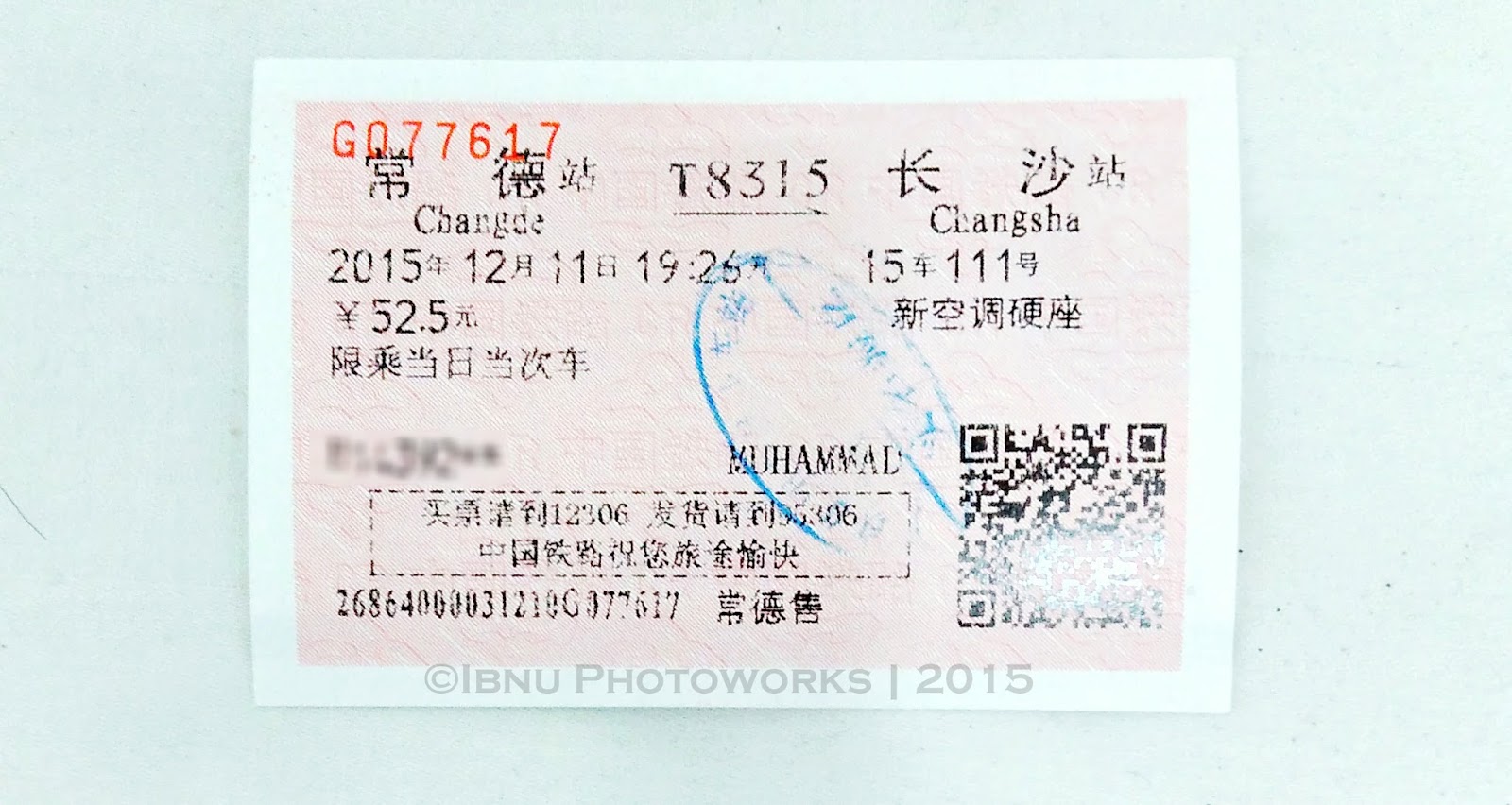 China penulis mendapatkan nomor kereta yang spektakuler, yaitu 15 dengan nomor