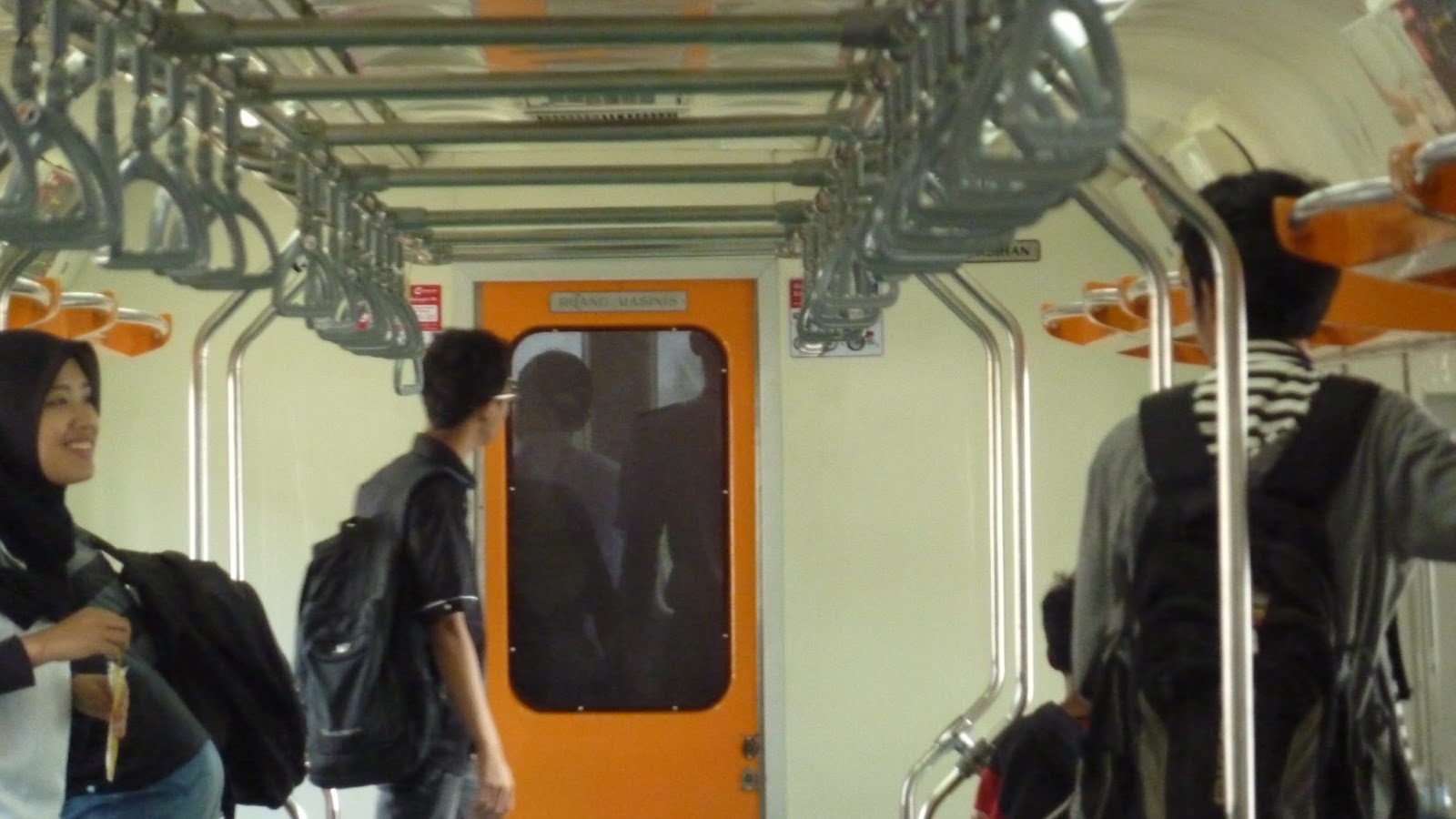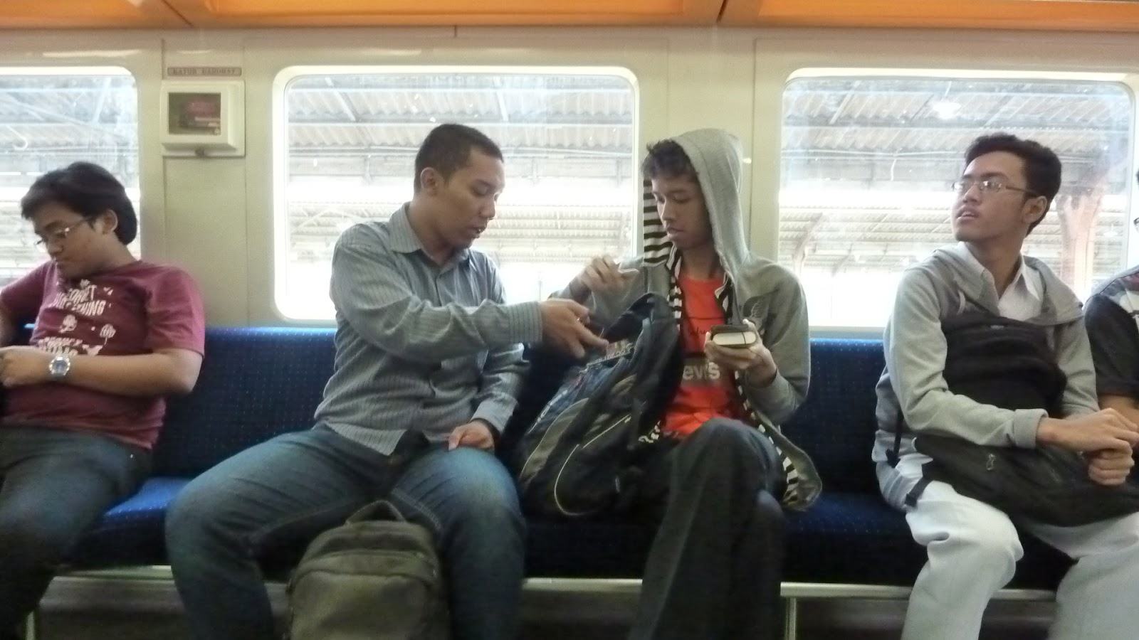 | Penumpang yang sedang berbisnis di dalam KRL |