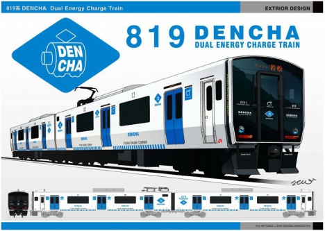 Hah kereta di charge? Ya, betul. Perkenalkan JR Kyushu seri 819 Dencha. Pada 29 Januari 2015, JR Kyushu merilis rancangan dari seri 819 Dencha. Nama “Dencha” mungkin terdengar sok imut, namun nama “Dencha” ini merupakan singkatan dari Dual Energy Charge Train atau kalau dalam Bahasa Indonesia artinya kereta dengan dua sumber tenaga yang bisa di charge.