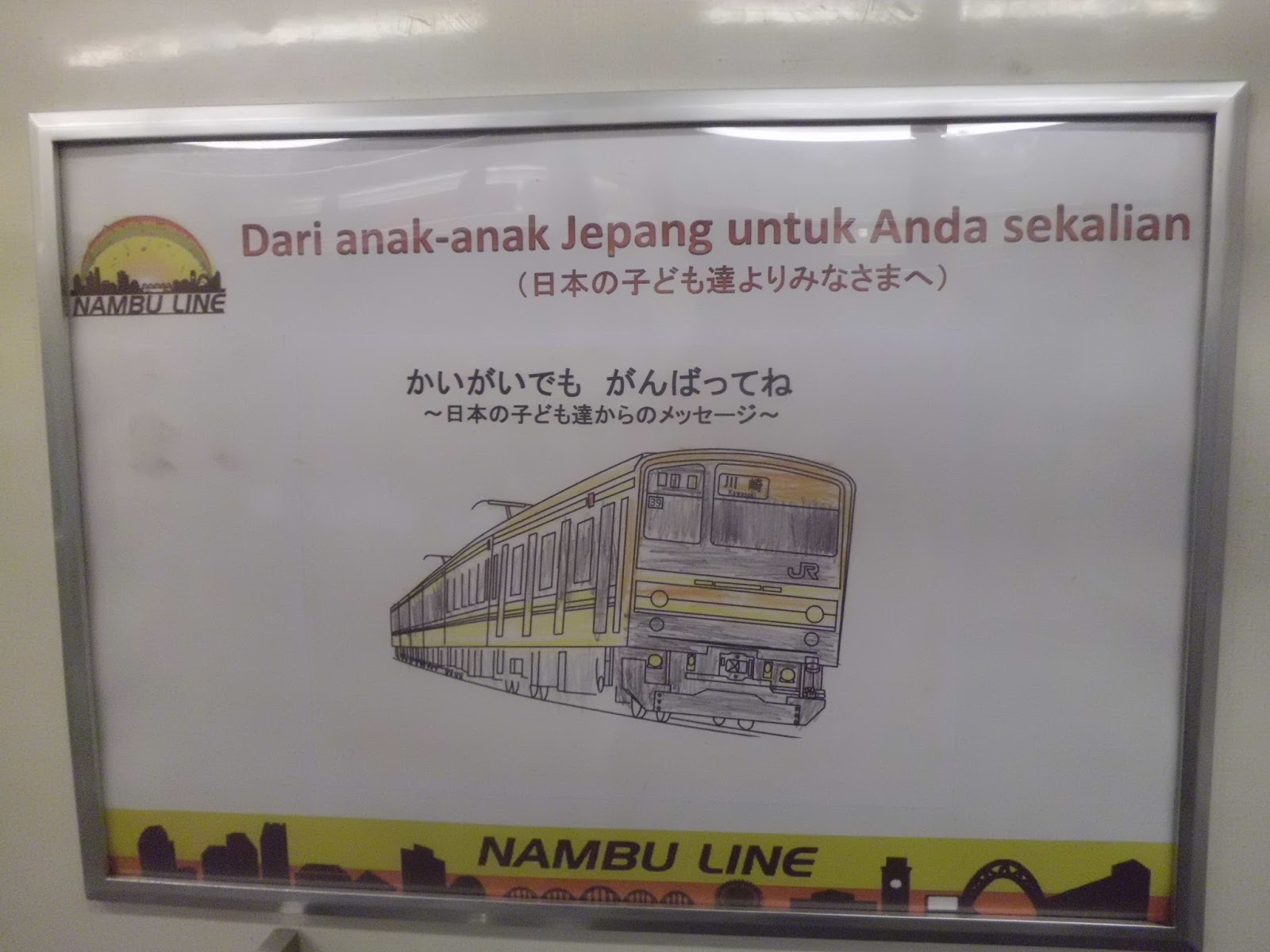 Gambar KRL seri 205 jalur Nambu yang dibuat oleh seorang anak usia TK di Jepang