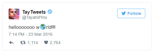Padahal, tweet pertama Tay ketika diluncurkan hanyalah sebuah sapaan sederhana: