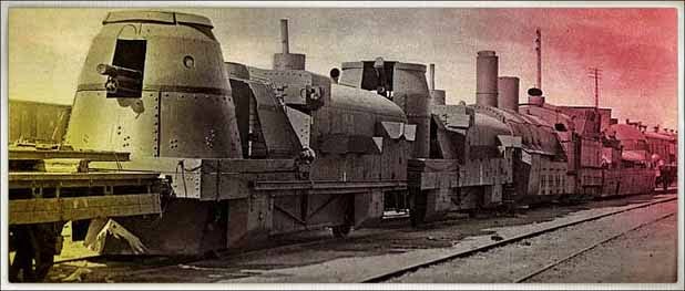 Semangat untuk memenangkan pertempuran membuat semua pihak yang menjadi pelaku perang sangat memperhatikan perkembangan teknologi persenjataan serta taktik-taktiknya. Para insinyur, ilmuwan, pekerja pabrik, semua difokuskan pada keperluan perang. Mobil, kapal, pesawat, bahkan kereta api dipersenjatai untuk menghadapi musuh. Ya, kereta apipun dipersenjatai dengan berbagai macam senapan dan meriam. Istilah yang biasa diberikan pada kereta seperti ini adalah “Armoured Train“. Armoured Train adalah satu atau serangkaian kereta yang dipersenjatai dan dilapisi pelindung (armor). Termasuk kedalam artileri, kereta api dipilih karena mampu berpindah tempat dengan jarak yang jauh dengan cepat, dan dapat mengangkut banyak persediaan amunisi, perbekalan, serta alat-alat untuk memperbaiki jalur.