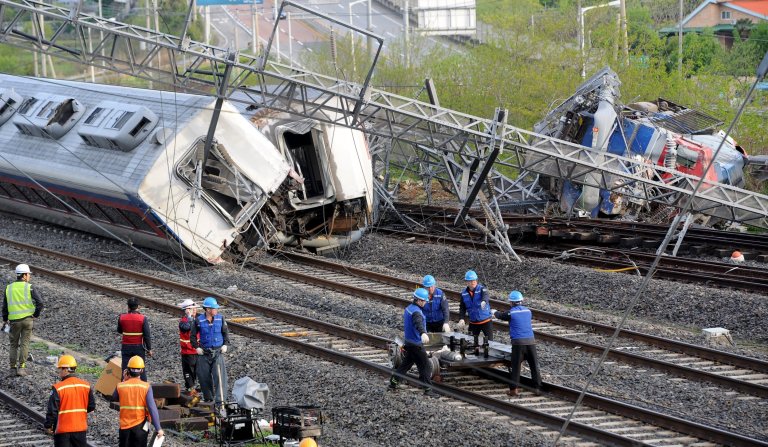 [22/04/2016] Sebagaimana dihimpun dari Reuters, sebuah KA Penumpang milik operator nasional KA Korea Selatan Korail, Mugunghwa, anjlok di petak rel yang sedang dilakukan perawatan ketika akan memasuki stasiun Yulchon, dekat kota Yeosu, Provinsi Jeolla Selatan, sekitar 350km di selatan ibukota Korea Selatan, Seoul pada pukul 3.40 pagi Jumat 22 April waktu setempat.