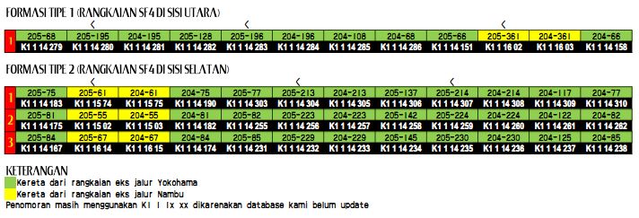 Tapi gatau juga sih, karena update terbaru kereta 205-30 dan 204-30 aja akhirnya digabung ke 205-74 sehingga 205-74 sekarang jadi rangkaian SF12. Jadi mulai hari ini jumlah SF12 ada 15 rangkaian, dan jumlah SF10 ada 28 rangkaian, masing-masing kurang 3 dan 6 rangkaian lagi dari target 18 SF12 dan 34 SF10 di akhir tahun nanti. Buat nambah 3 SF12 lagi tentunya masih bakal ada mixing seri 205, kalo buat nambah 6 SF10 lagi nanti ketambel 6 dari TM 6000 yang kapalnya udah berangkat dari Jepang itu, tapi buat kekurangannya dari rangkaian 205 yang tadinya 10 kereta lalu dimix jadi 12 kereta itu mungkin bakal mix armada lain, misalnya TM 05 atau TM 6000 atau JR 203.