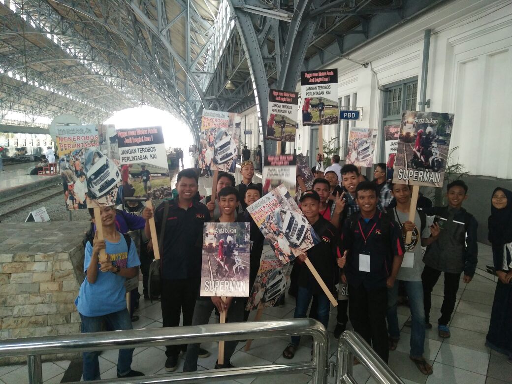 | Railfans yang menampilkan atribut yang berkaitan dengan keselamatan perlintasan KA (Enrico Perdana) |
