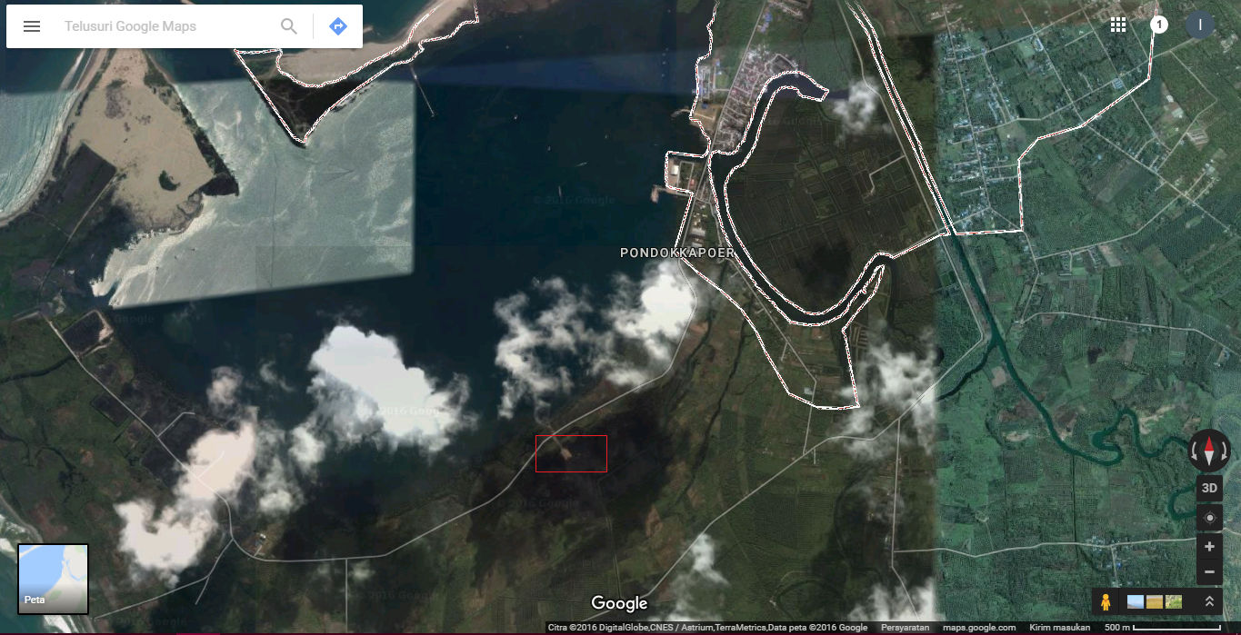Lokasi Gedung Stasiun Pulau Balai (Kotak merah) (Google Maps, penambahan kotak merah oleh penulis) |