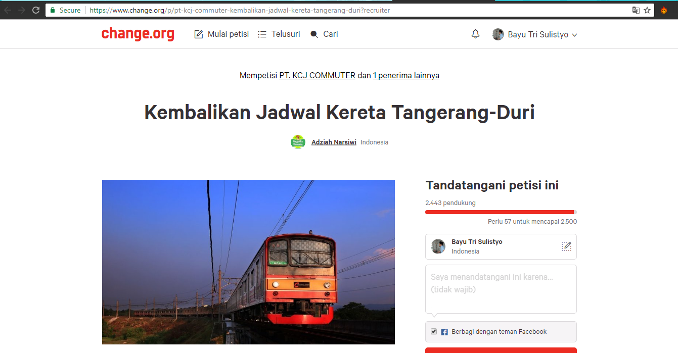 | Petisi perbaikan GAPEKA di Lintas Tangerang yang dibuat di change.org |