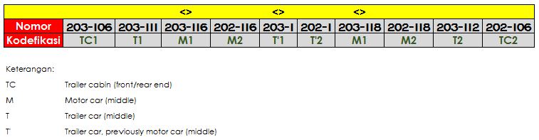 Formasi rangkaian 203-106F setelah perubahan formasi ditampilkan pada tabel di bawah.