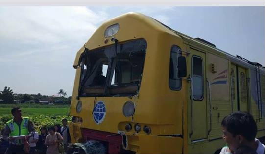 | Kondisi muka KRDE Prambanan Ekspres yang babak belur setelah ditabrak truk | Foto: Suparto Arjuna Tailor |