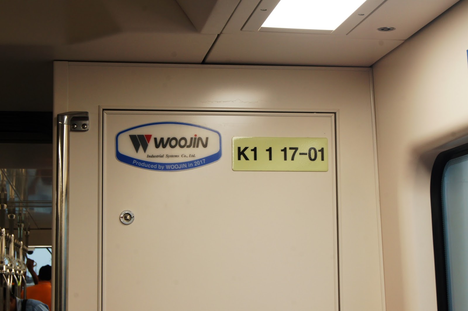| Builder plate Woojin dan nomor sarana KRL APMS Woojin. |