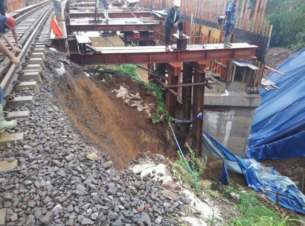 Lebih tepatnya di lokasi proyek Tol Bogor – Ciawi – Sukabumi (BOCIMI). Tepian jalur tergerus air dan longsor hingga nyaris mendekati jalur. Lokasi yang terkena longsor langsung diperbaiki oleh petugas resort jalan rel dibantu pekerja proyek Tol Bocimi.