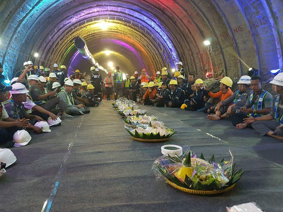 | Para pekerja yang mengadakan syukuran tersambungnya Terowongan Notog Baru | picture by: Yofi Oktarisza |