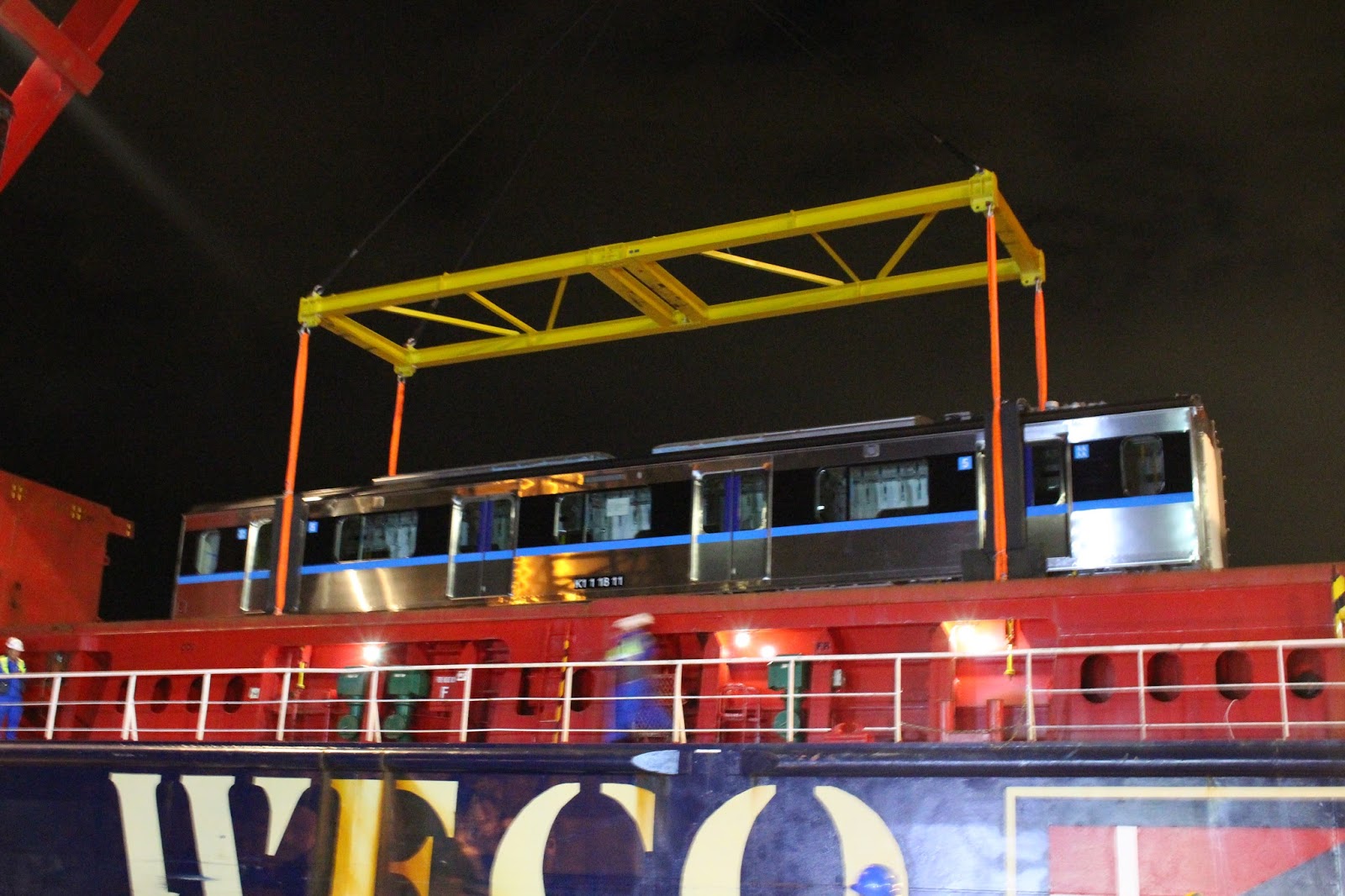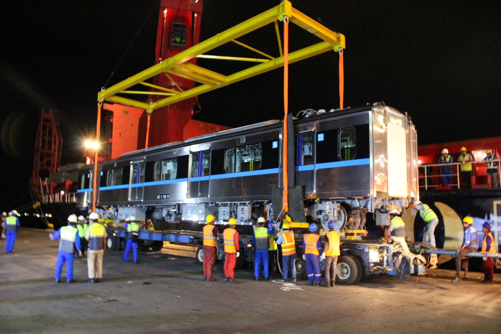 Di malam itu, keseluruh 8 kereta tengah dari dua rangkaian KRL MRT Jakarta selesai diturunkan dari kapal, menyisakan 4 kepala yang sayangnya masih terhalang pupuk dan gandum dari Tiongkok. Kami lalu mengunjungi kembali dermaga 101 keesokan harinya, meskipun tiada kegiatan penurunan.