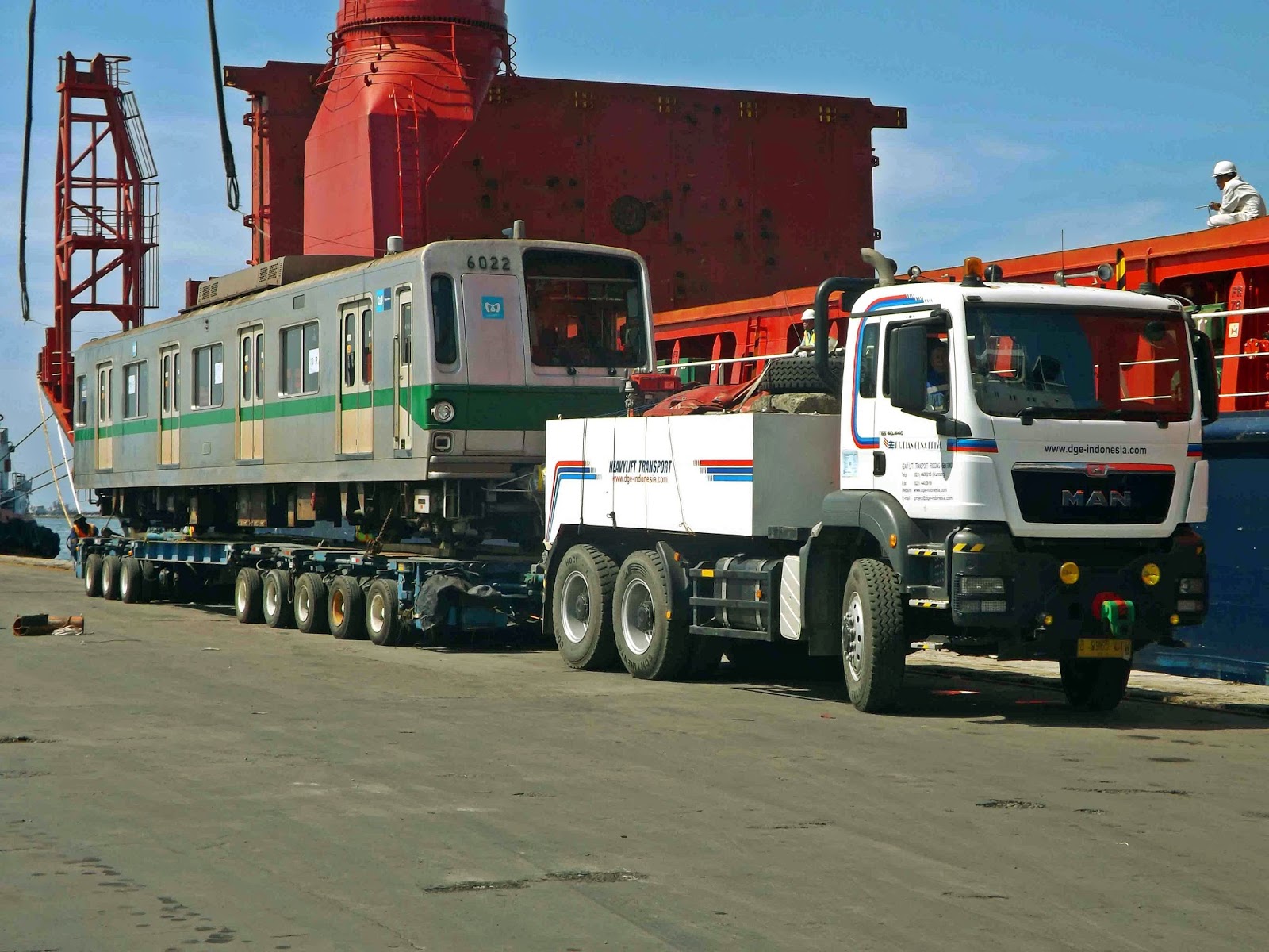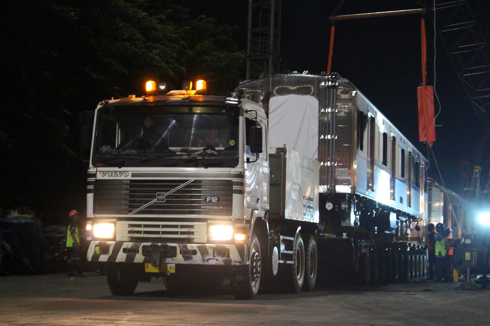 | Truk yang tadi digunakan untuk mengangkut KRL KCI digunakan juga untuk memindahkan KRL MRT |