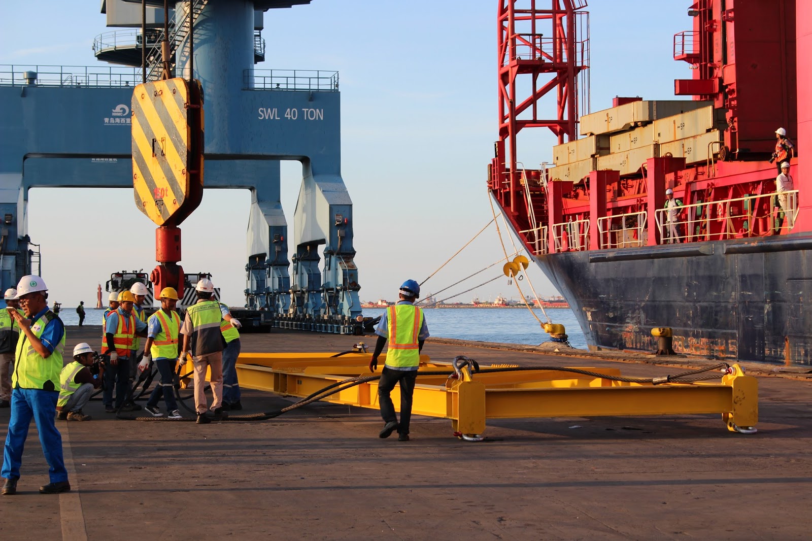 Di sela-sela penantian penurunan kereta MRT, ada kejadian konyol ketika crane yang seharusnya digunakan untuk menurunkan muatan kereta MRT justru digunakan untuk mengangkut logistik konsumsi! Sungguh sebuah bukti kemampuan orang Indonesia bertindak fleksibel dengan apapun yang ada
