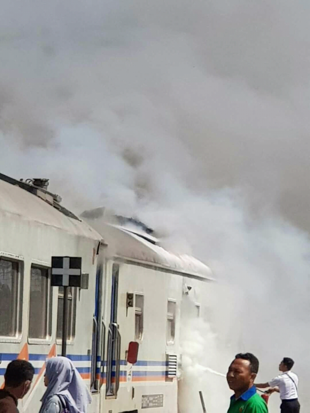 Kereta Pembangkit Gajayana Tambahan Terbakar di Nganjuk