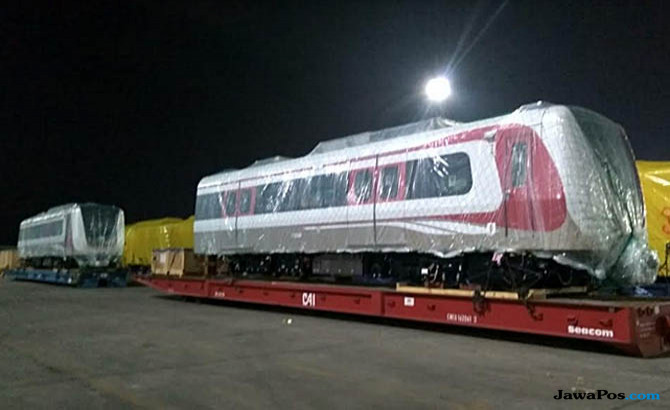 | Rangkaian baru LRT yang tiba di Pelabuhan Tanjung Priok malam tadi | Jawapos |