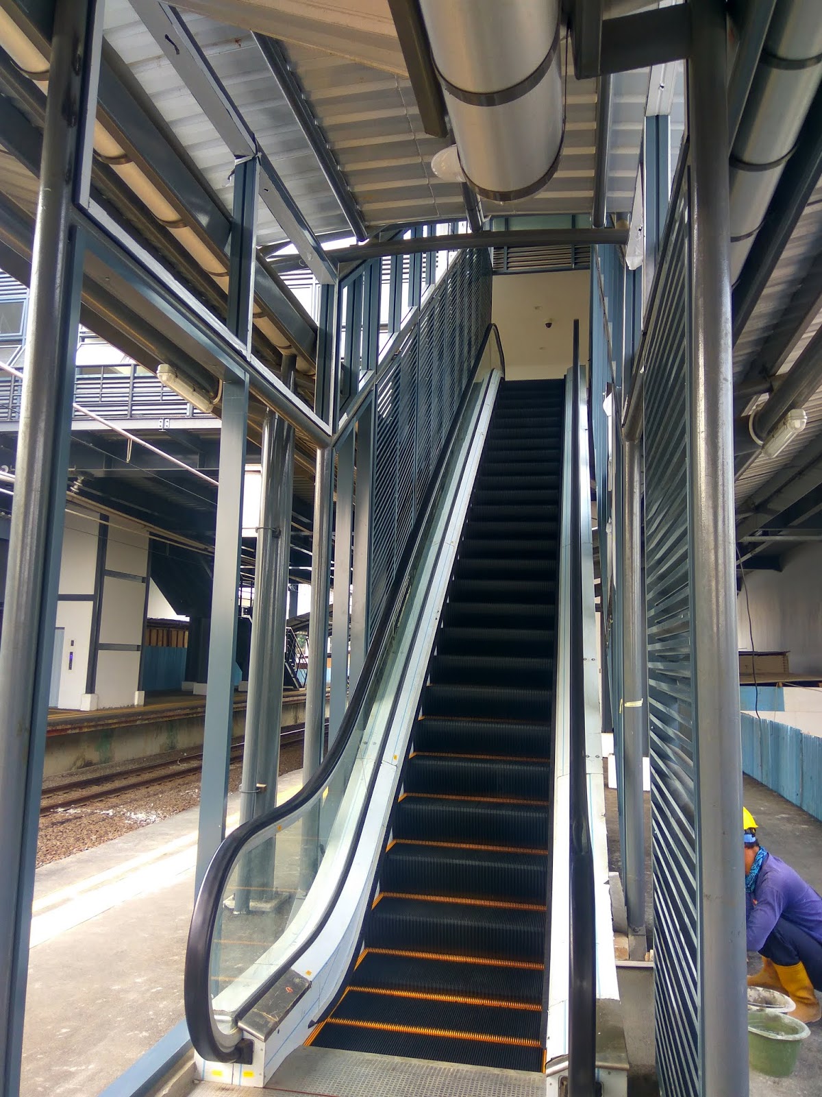 | Eskalator yang menghubungkan bangunan loket dengan peron stasiun |