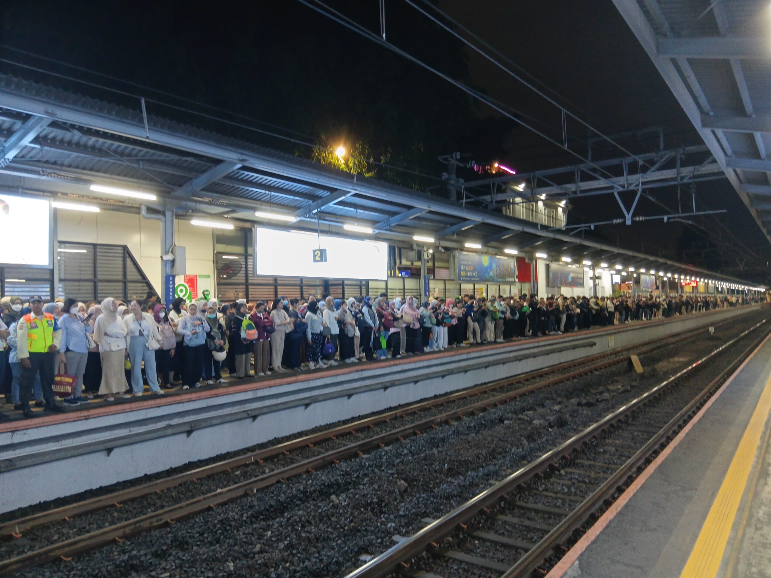 Ketika jam sibuk penumpang yang baru turun di peron 2 harus mengantre untuk bisa menyeberang. Apalagi dengan headway yang rapat seperti susunan pemainnya Patrick Kluivert, antrean bisa tambah panjang karena penumpangnya makin banyak dan keretanya lewat terus.
