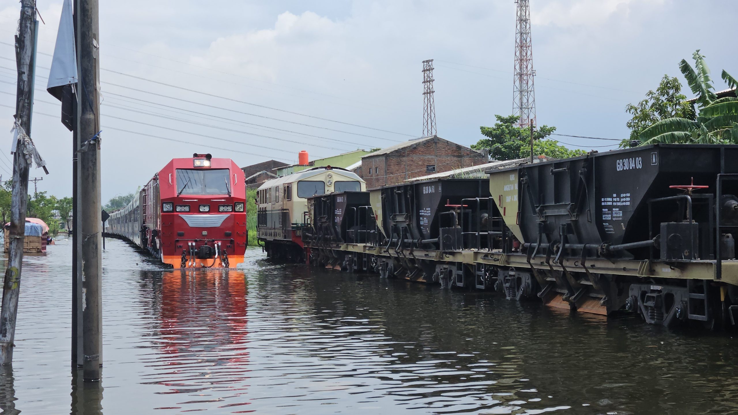 Sejumlah perjalanan KA di Lintas Pantura terhambat. Seperti banjir-banjir sebelumnya, lokomotif BB3048411 dan CC300 disiagakan untuk menerobos banjir.