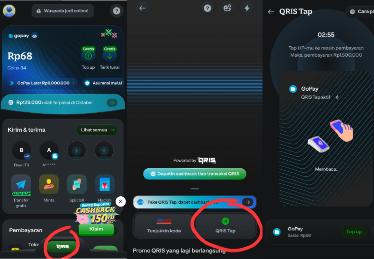 Di sini Tim REDaksi menggunakan aplikasi Gopay untuk percobaan. Untuk menggunakan QRIS Tap di Gopay dapat dilakukan melalui menu QRIS di aplikasi lalu pilih QRIS Tap.