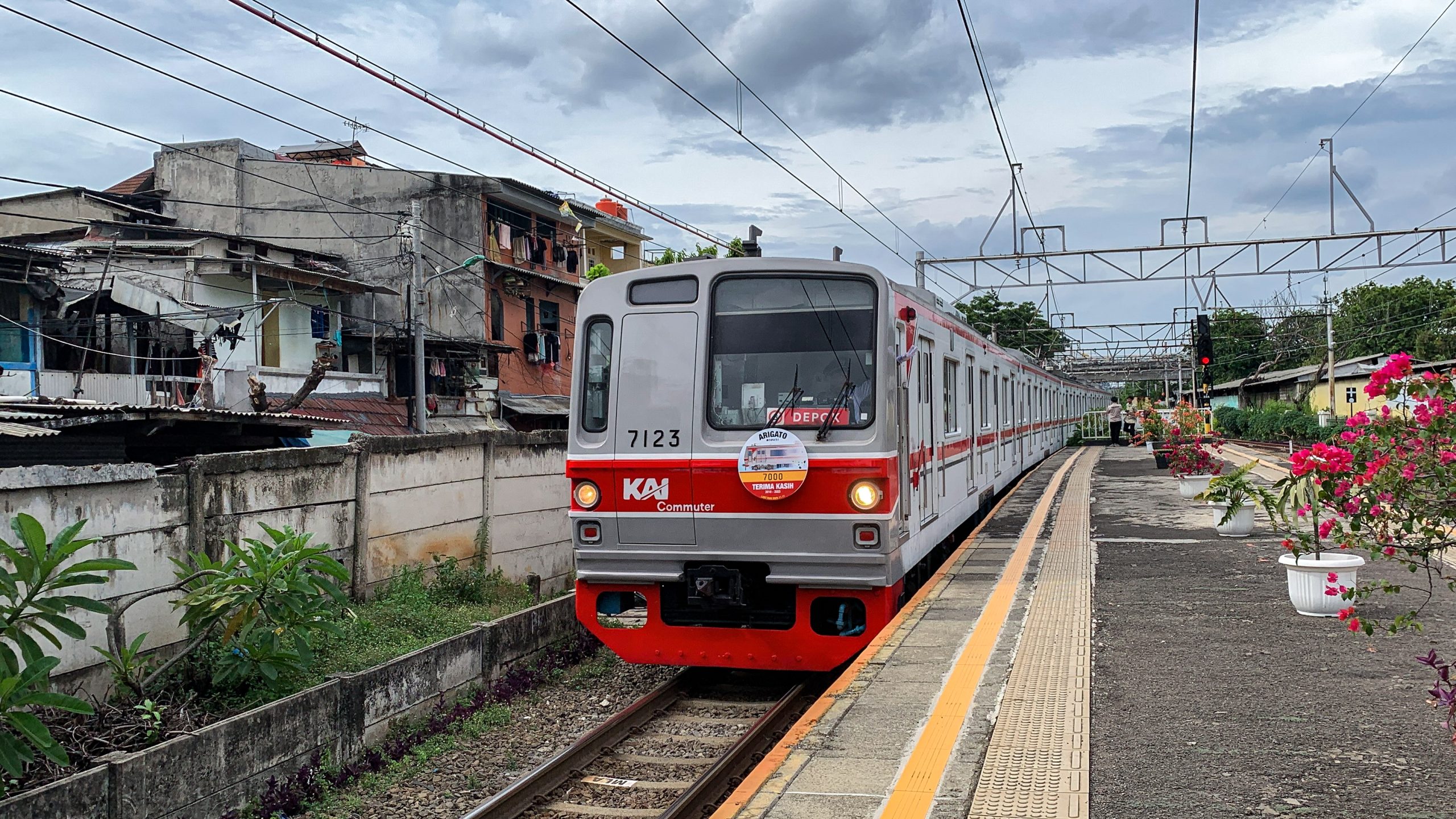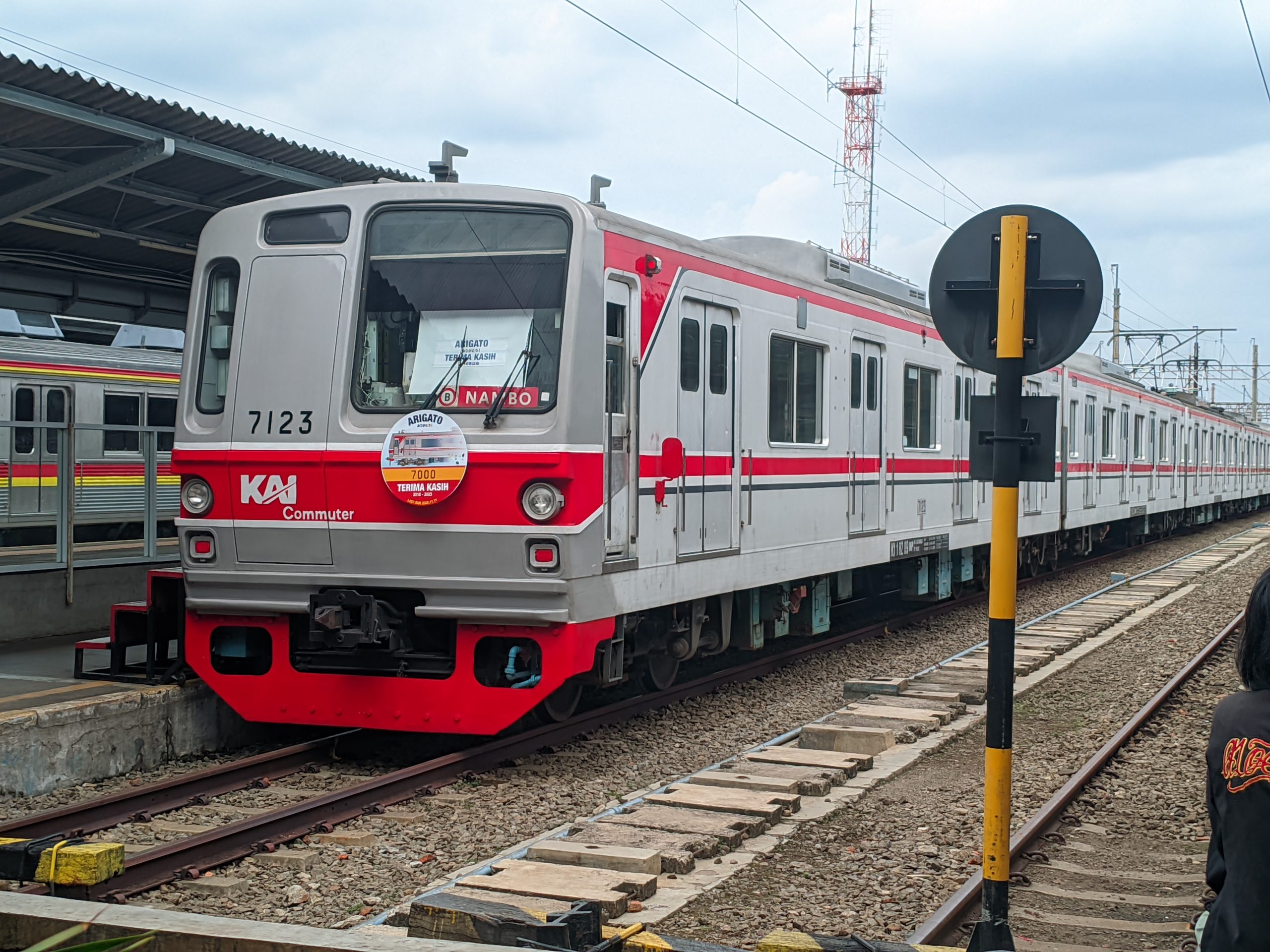 Rangkaian 7123F berjalan langsung di Stasiun Angke | Foto: Haikal Alamsyah