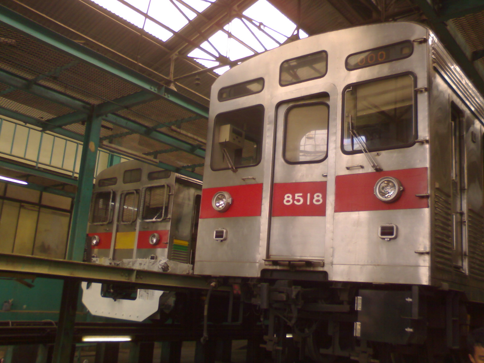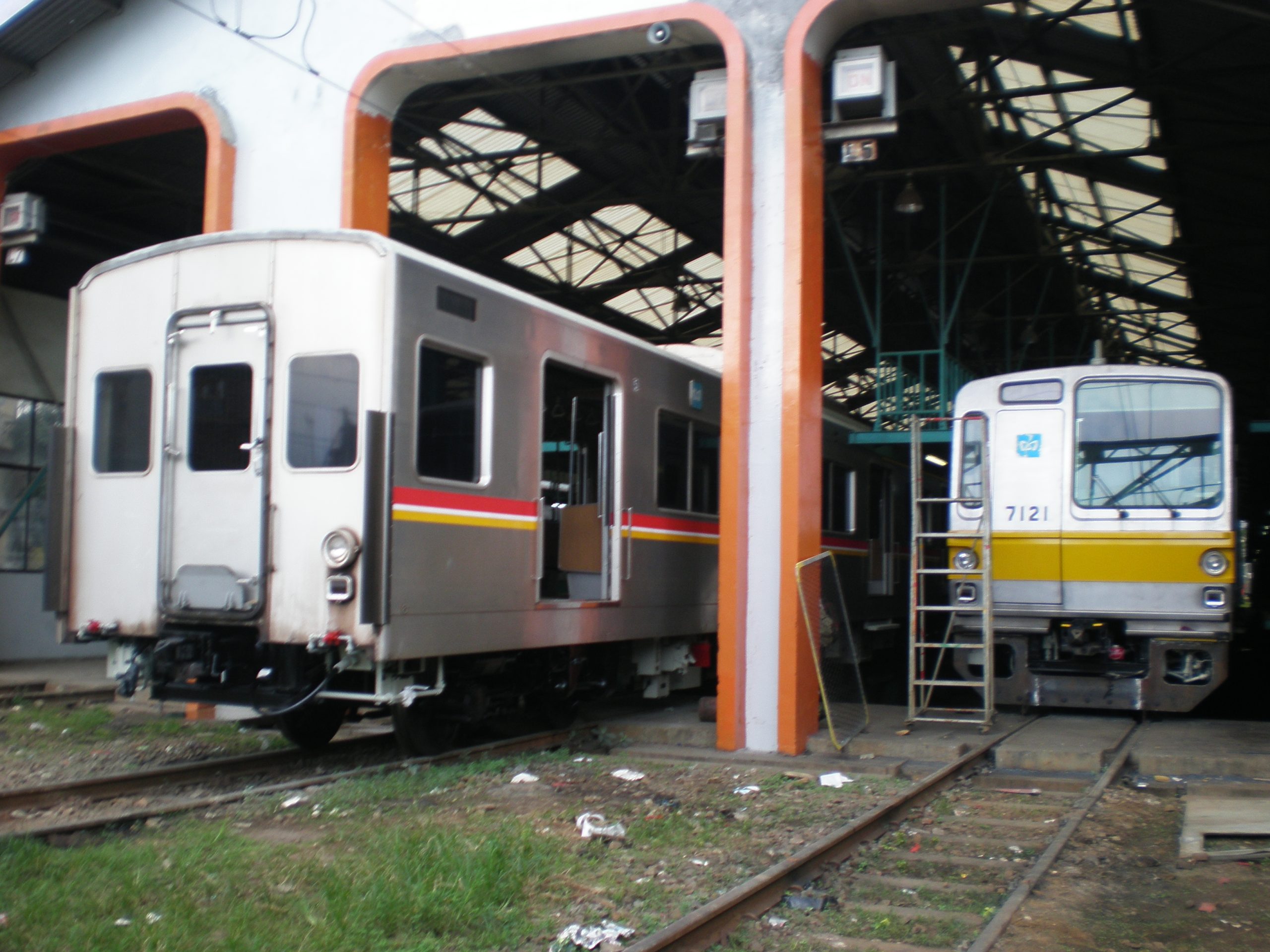 Tokyu 8618F yang baru saja tiba di depo Bukit Duri tahun 2008 masih mengenakan livery asli bawaan dari Jepang. Di sebelahnya tampak Tokyu 8612F sedang dilakukan pemasangan livery Divisi Jabotabek. | Foto: RED/Tubagus Gemilang Pratama