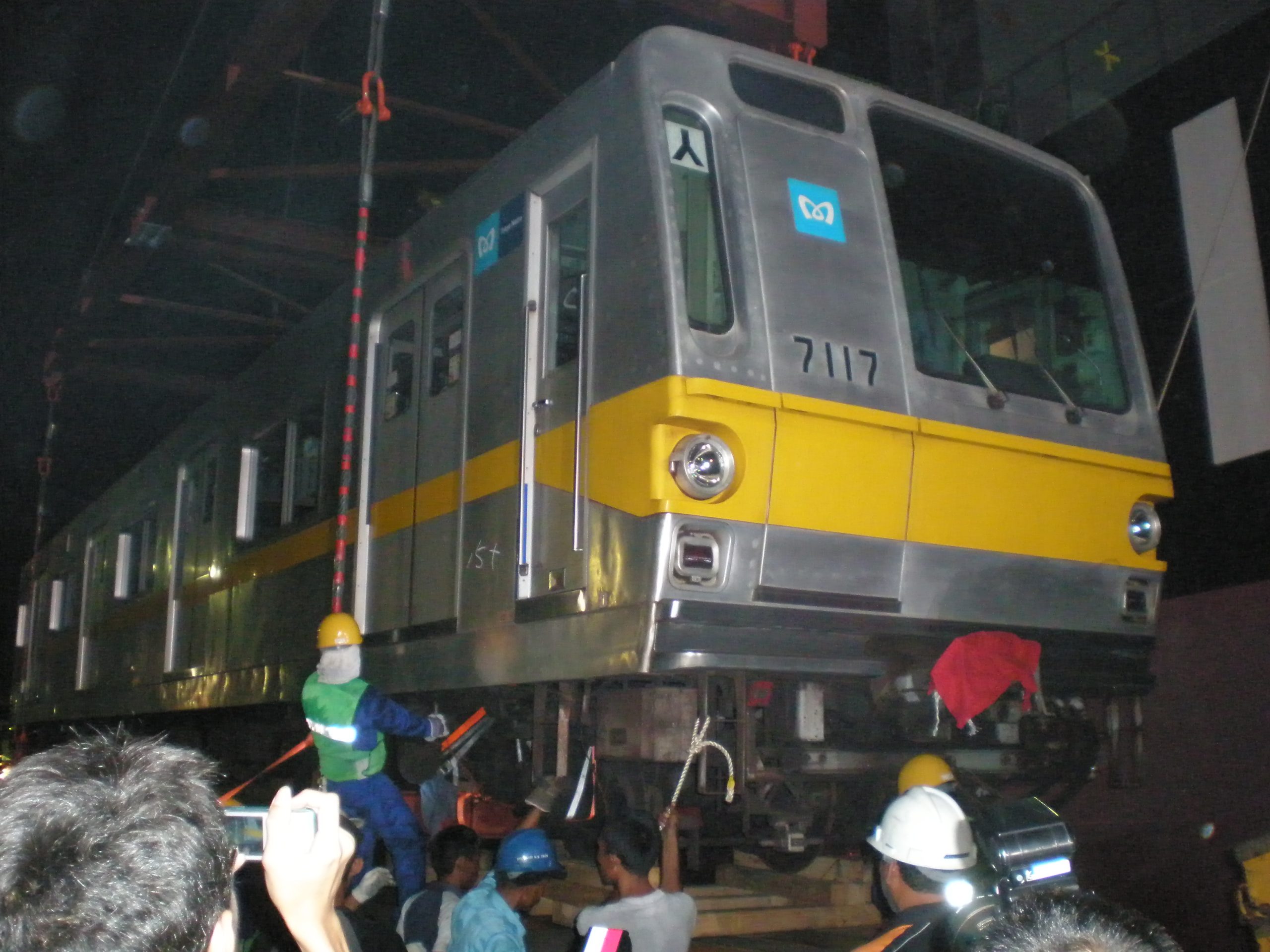 Tokyo Metro 7117 saat baru diturunkan dari kapal di pelabuhan Tanjung Priok. Ini adalah KRL seri 7000 pertama yang datang ke Indonesia di tahun 2010. | Foto: RED/Tubagus Gemilang Pratama