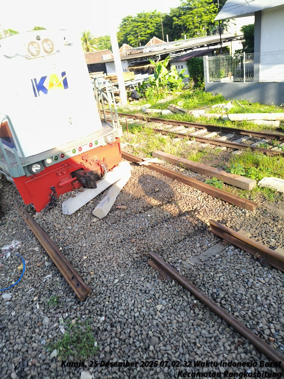 REDigest.web.id, 26/12 – Lokomotif penarik Commuter Line Merak keluar jalur di Stasiun Rangkasbitung pada Kamis (25/12) pagi tadi. Lokomotif CC2019215 keluar jalur sekitar pukul 7:30Â saat tengah langsir.