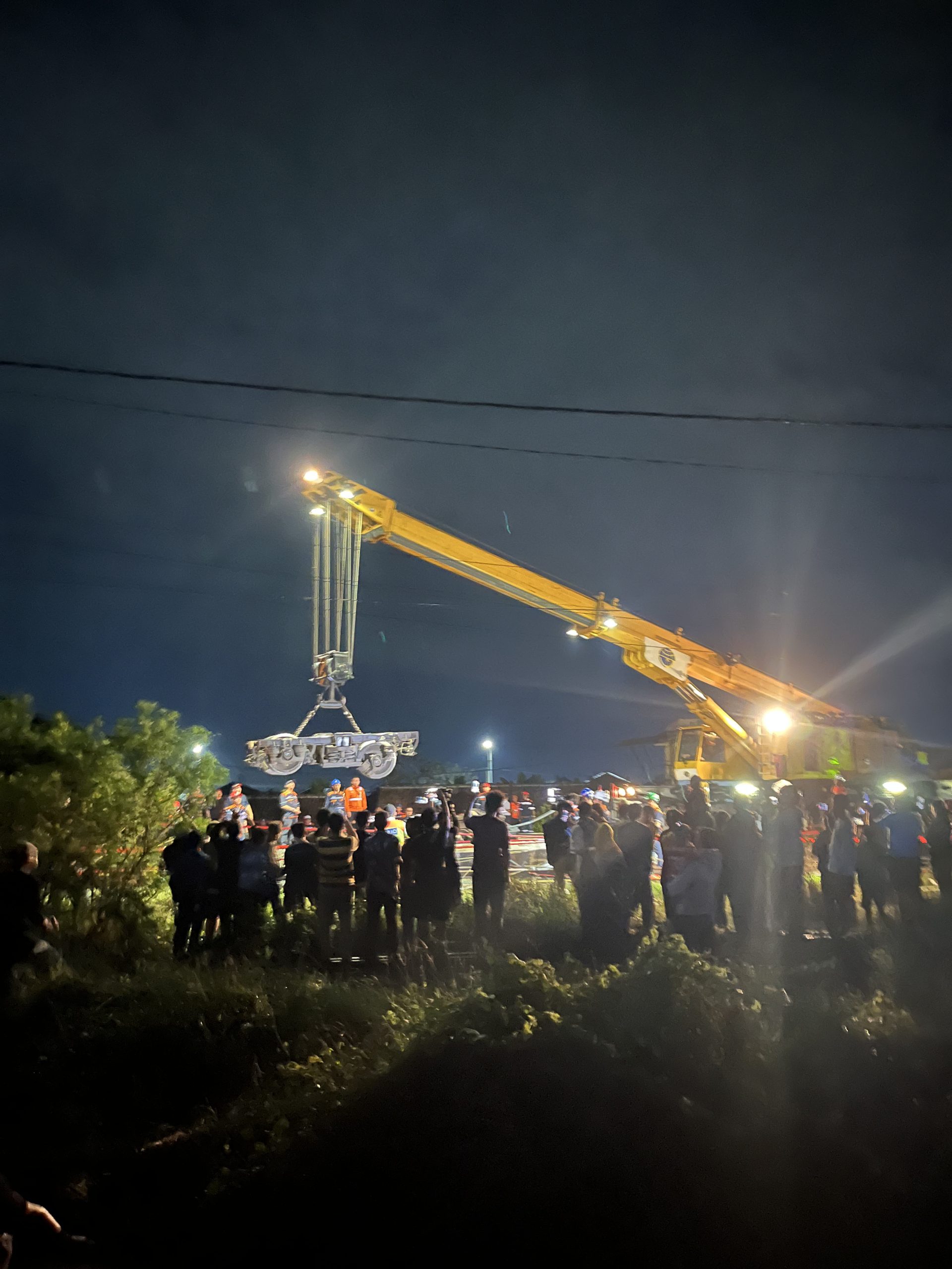 Perbaruan, 26 Oktober 2025 0:48 – Saat ini kereta eksekutif 8 yang anjlok telah berhasil dievakuasi petugas. Sementara itu kereta pembangkit yang anjlok hingga bogienya terlepas masih dalam proses evakuasi.